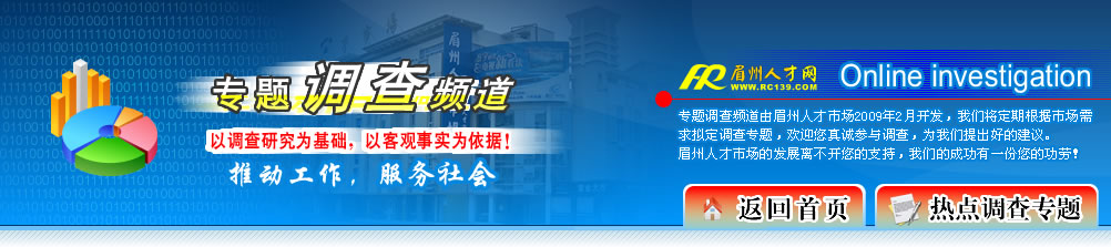 眉山人才專題調(diào)查頻道,您的誠信參與,是對我們的最大支持!