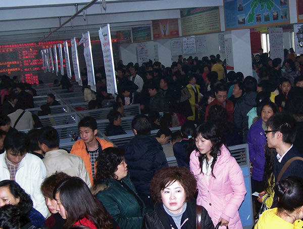 眉州人才市場一直堅持每周星期五定期舉辦現(xiàn)場招聘會,2009年2月6日(星期五)春節(jié)后的第一場招聘會火爆開場,1200平方米的招聘大廳被擠得水泄不通。招聘會共有103家用人單位進場招聘,提供崗位1800余個。來自市內(nèi)外的3000余名求職者進場應(yīng)聘。此場招聘會參會的大中專畢業(yè)生占比例較大,技工類、服務(wù)類、醫(yī)療衛(wèi)生類、營銷類崗位需求量較大。