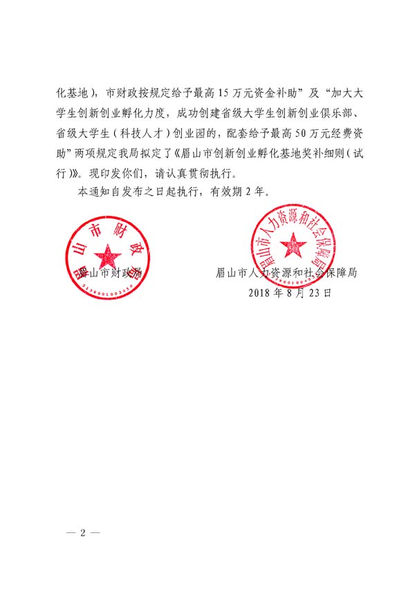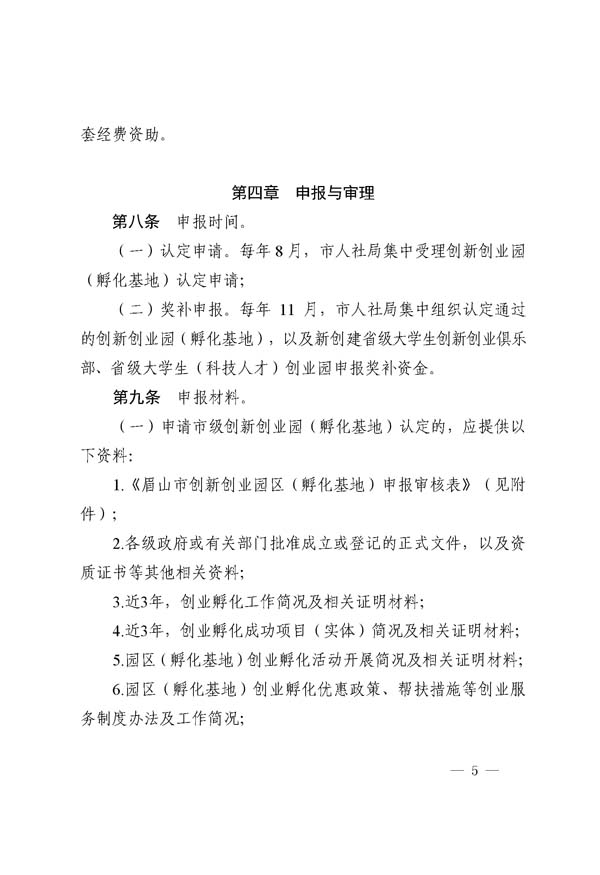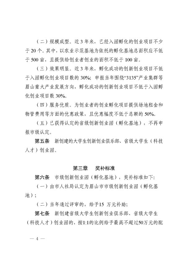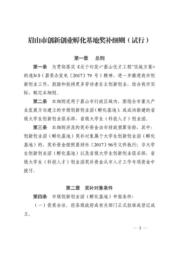 眉山市創(chuàng)新創(chuàng)業(yè)孵化基地獎補細則(試行)