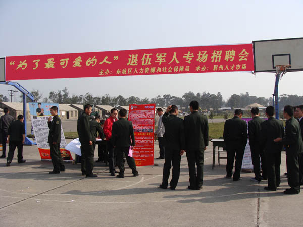 2010年12月上旬,東坡區(qū)人力資源和社會(huì)保障局為駐眉某部隊(duì)的退伍軍人舉辦專場招聘會(huì)。